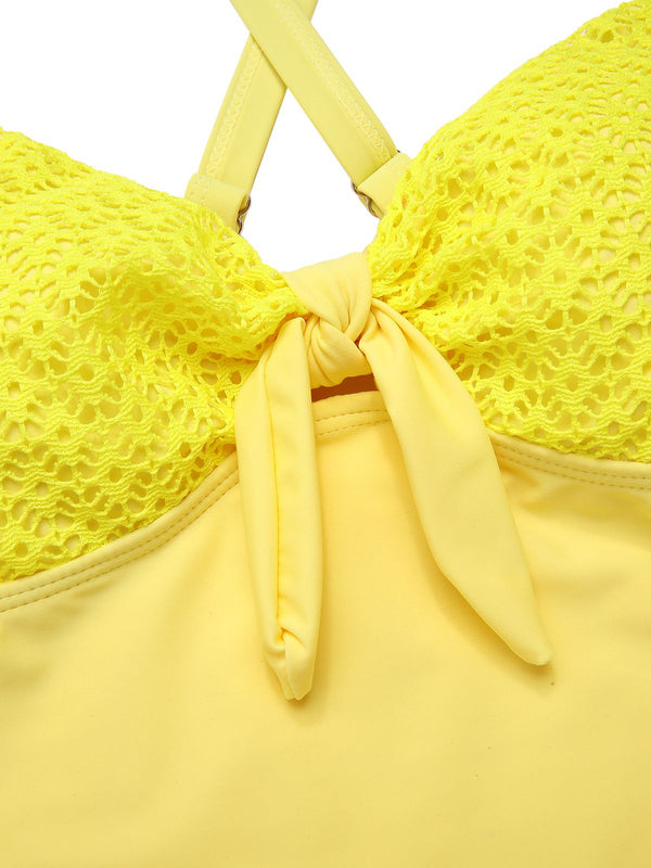 Gelb 1970er Meerjungfrau Hülse Halter Bikini Set