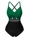 Grün 1940er Hohl Taillen Patchwork Badeanzug