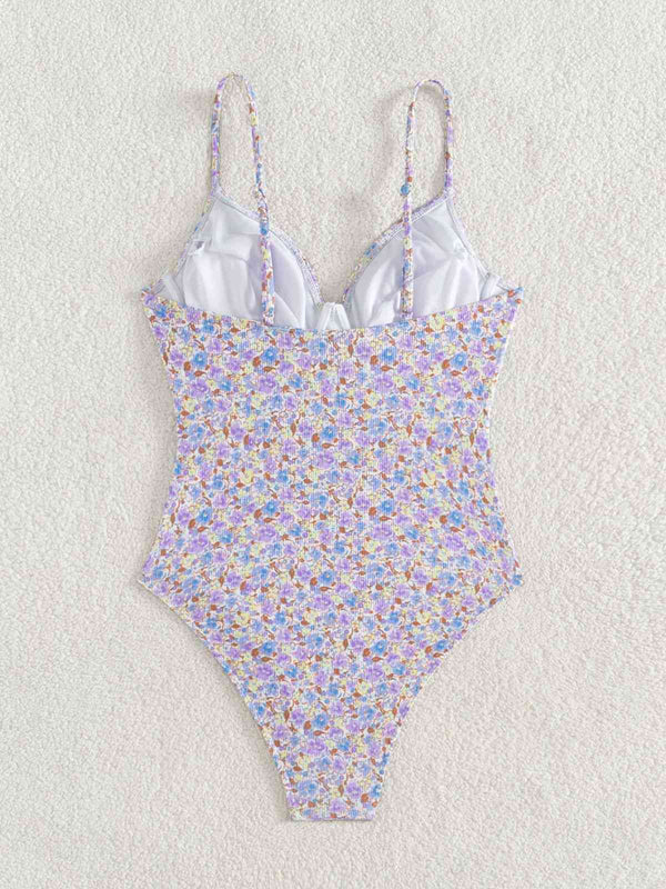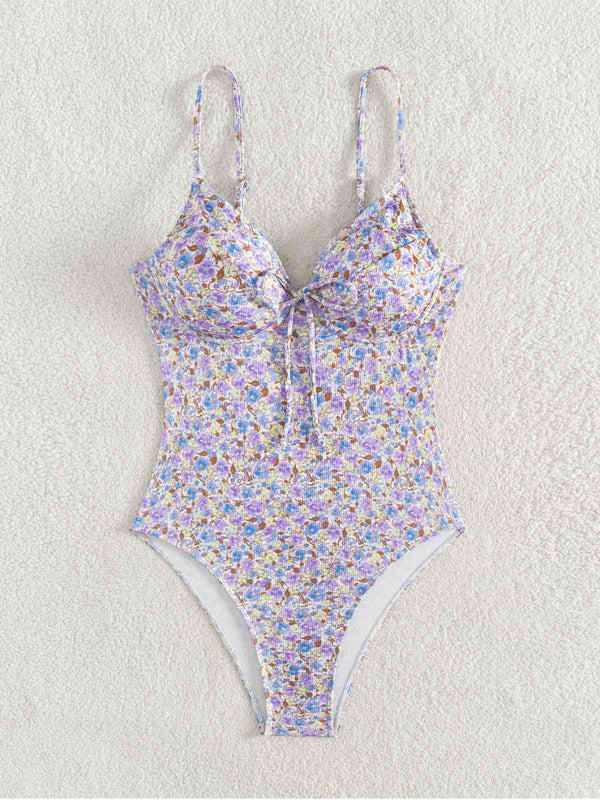 Lila 1950er Kleine Blumen Schnürung Badeanzug
