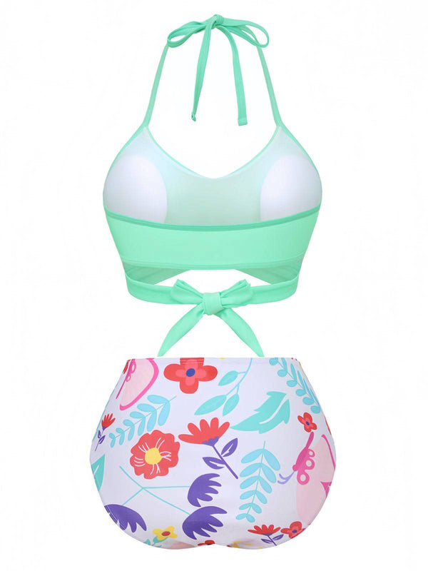 Mintgrün 1940er Blumen Hohe Taille Bikini Set