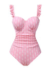 Rosa 1950er Geometrisch Rüschen Badeanzug
