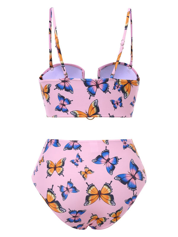 Rosa 1950er Hohl Ring Schmetterling Bikini Set