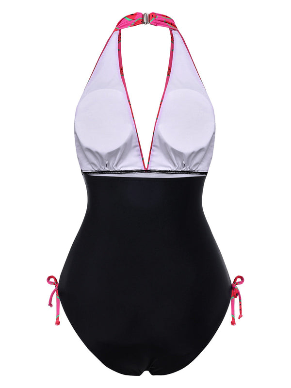 Rosa 1960er Wassermelone Tief-V Halter Badeanzug