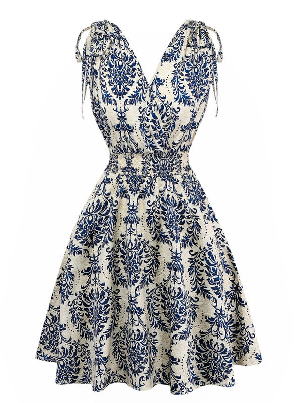 1970er Boho Schnürung V-Ausschnitt Kleid