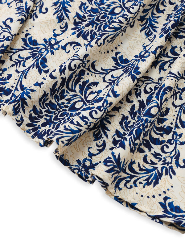 1970er V-Ausschnitt Boho Puffärmel Weites Bein Jumpsuit
