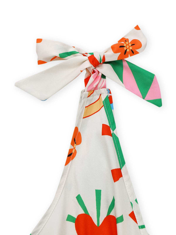 1930er Breite Träger Hohl Twist Gesmokt Blumen Jumpsuit
