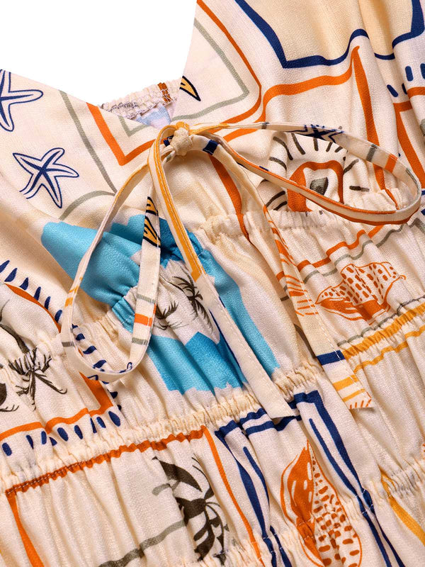 2PCS Multicolor 1940er Marine Life Top & Shorts