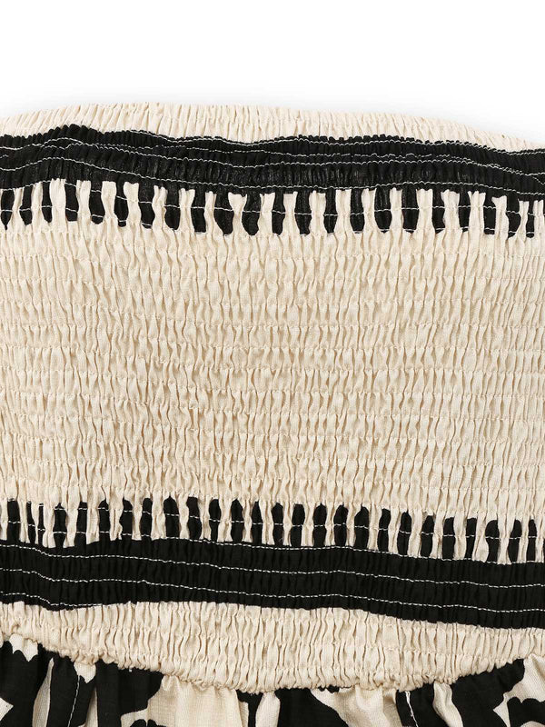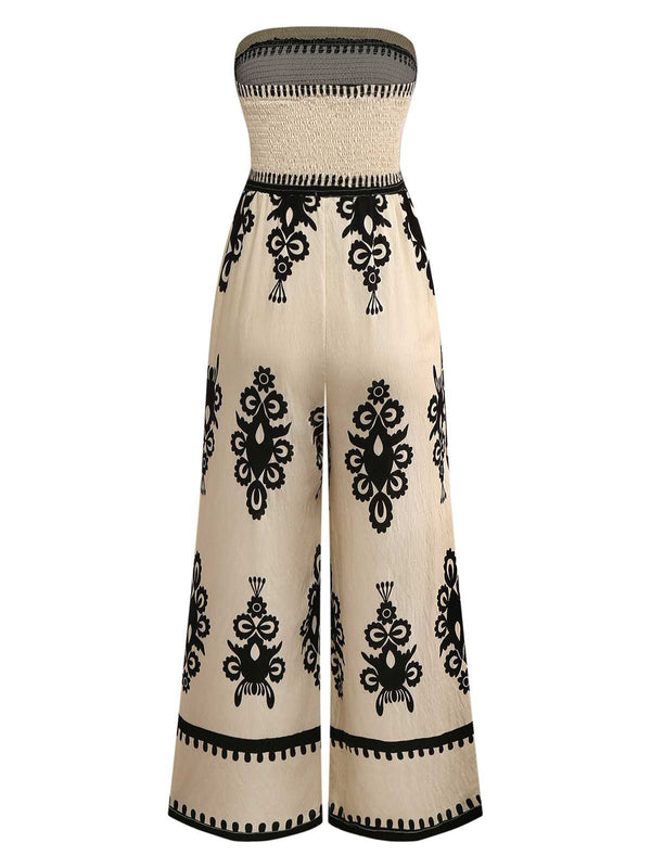 Aprikose 1970er Boho Trägerlos Gesmokt Jumpsuit