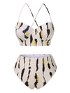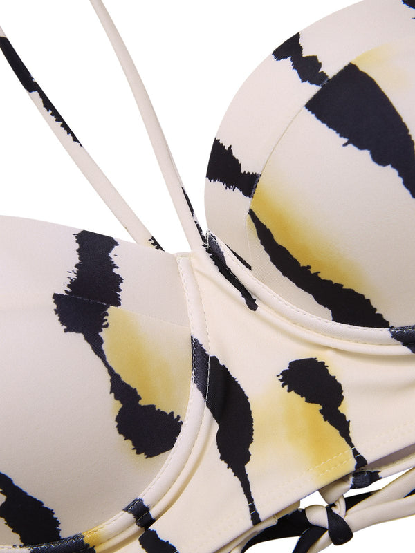Beige 1950er Zurück Kreuz Träger Tinte Spritzer Bademode