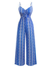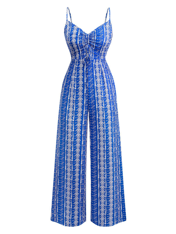 Blau 1970er Boho Spaghetti Träger Jumpsuit
