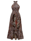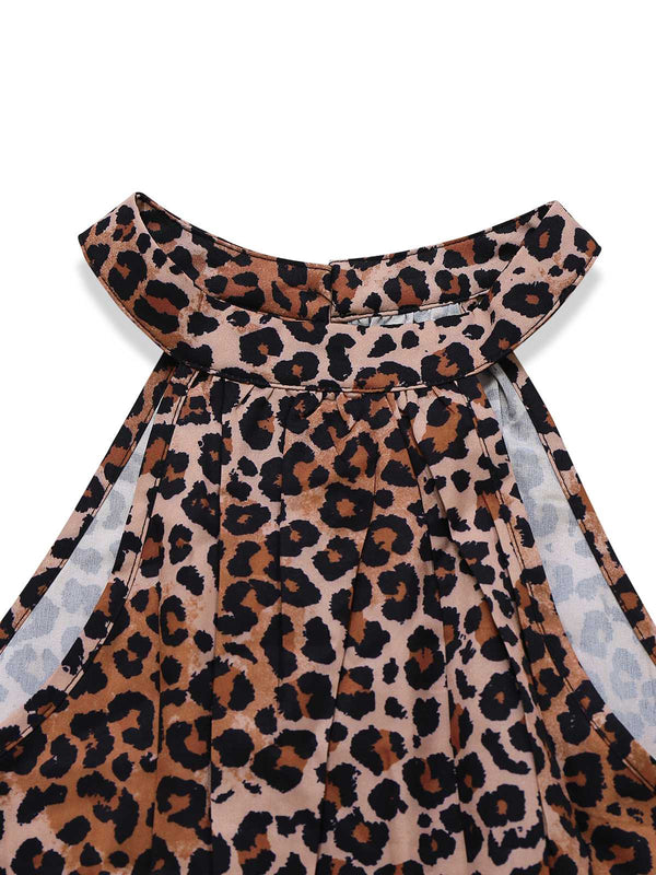 Braun 1930er Leopard Schmetterling Rundhals Halter Kleid