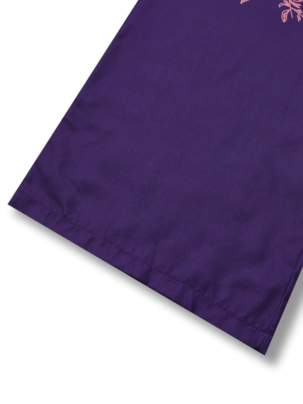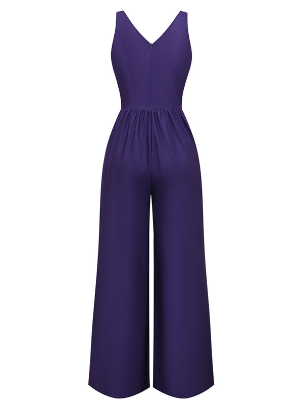 Dunkellila 1970er V-Ausschnitt Blumen Boho Jumpsuit