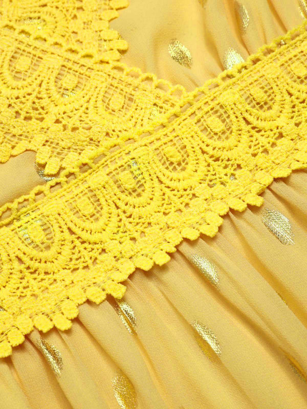 Gelb 1950er Spitze Patchwork Tupfen Kleid