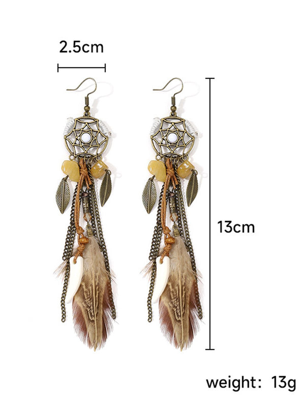 Leder Halsband & Feder Traumfänger Quasten Ohrringe Set