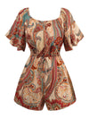 Mehrfarbig 1970er Bohemien Schulterfrei Romper
