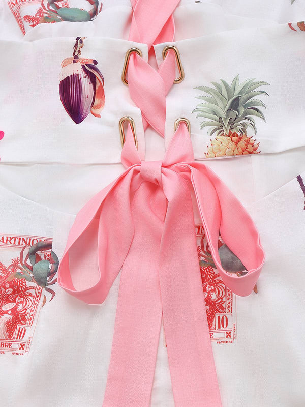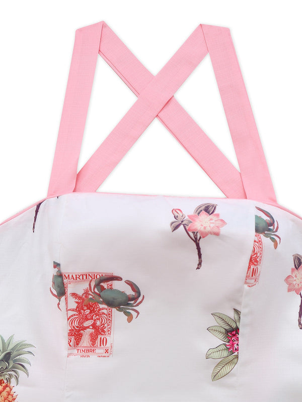 Rosa 1960er Tropisch Drucke Raffhalter Träger Kleid