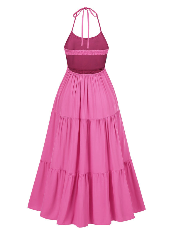Rosenrot 1970er Halfter Plaids Blumen Kleid