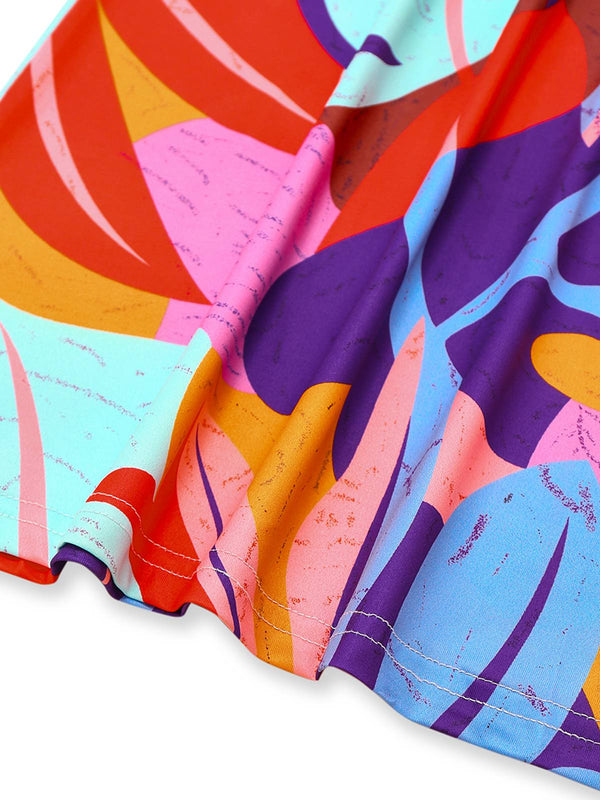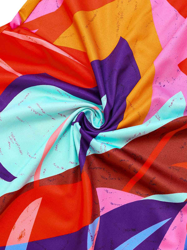 Rot 1930er Tropisch Gürtel Tief V Träger Jumpsuit