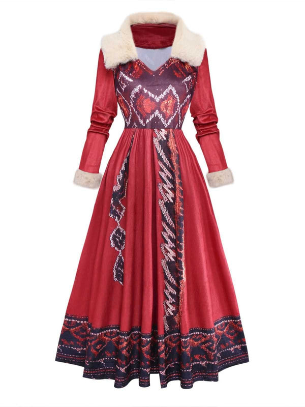 Rot 1970er Abnehmbar Pelz Kragen Boho Kleid