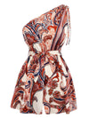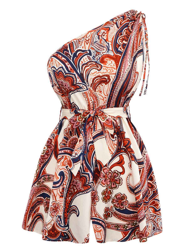 Rot 1970er Eine Schulter Bohemien Blumen Romper
