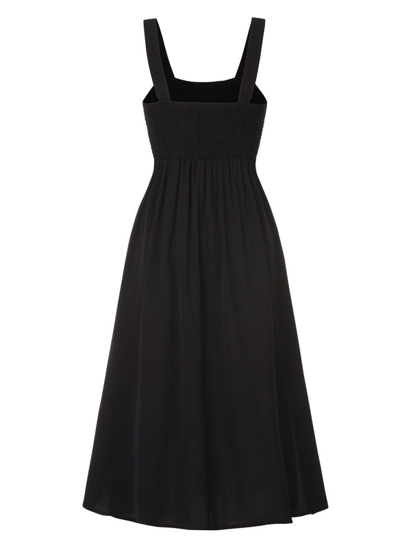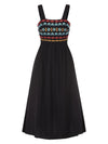 Schwarz 1940er Träger Bestickt Blumen Maxi Kleid