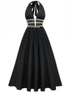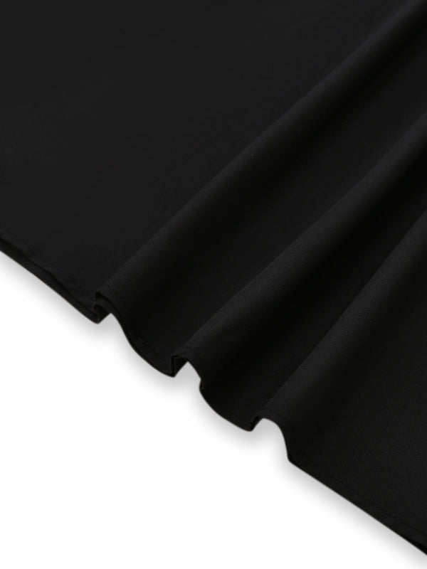 Schwarz 1970er Bohemien Hülse Randbereich Gesmokt Kleid