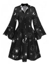 Schwarz 1970er Sonne & Mond Ausgestellte Ärmel Hemd Kleid