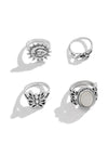 Silber Vintage Hippie Schmetterling Blumen Ring Set