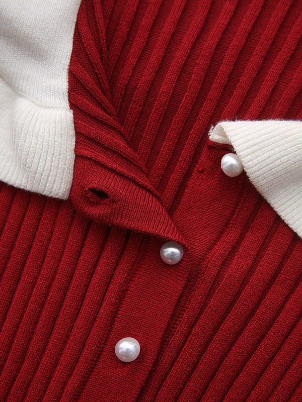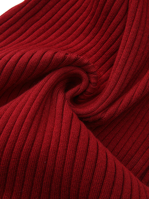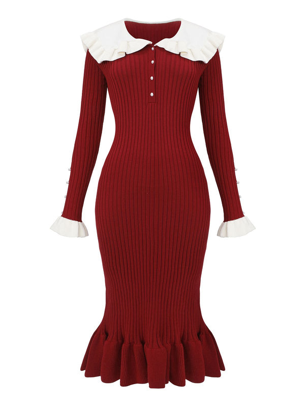 1980er Rippstrick Rüschen Kragen Midi Kleid