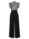 2PCS Schwarz 1930er Streifen Krawattenkragen Rüschenärmel Bluse & Hose