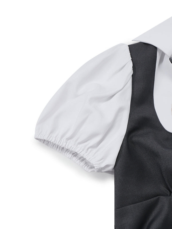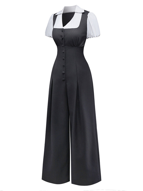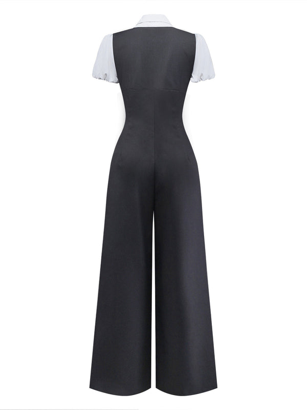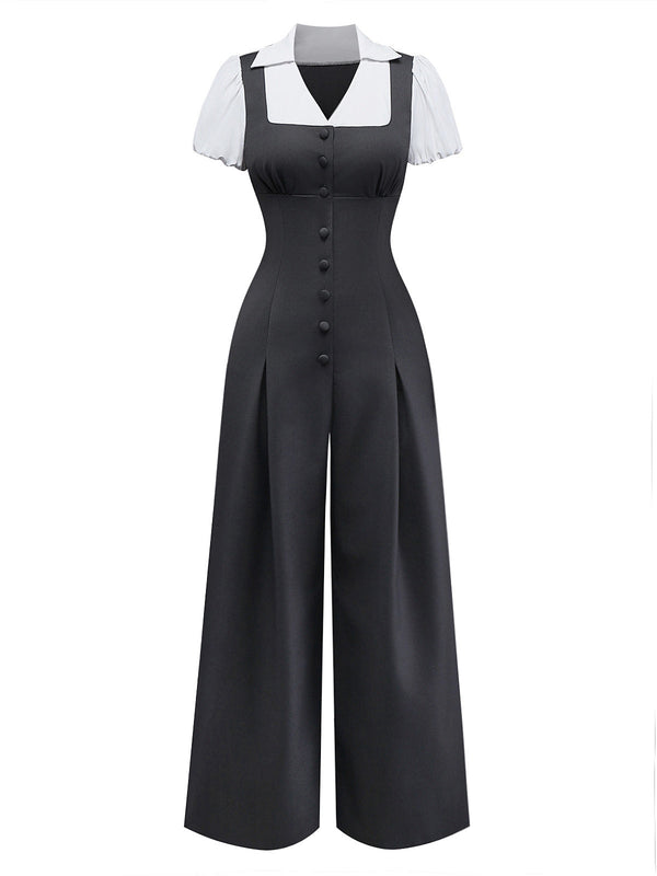 [Vorverkauf] Grau 1950er Falsch Zweiteilig Johnny Kragen Jumpsuit