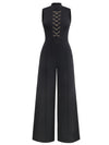 Schwarz 1930er Ärmellos Chain Kordelzug Halbrollkragen Jumpsuit