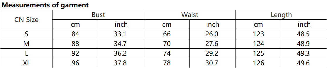 Hinweis: Die Maße der Kleidungsstückdiagramme können aufgrund unterschiedlicher Produkte oder Lieferanten variieren.
