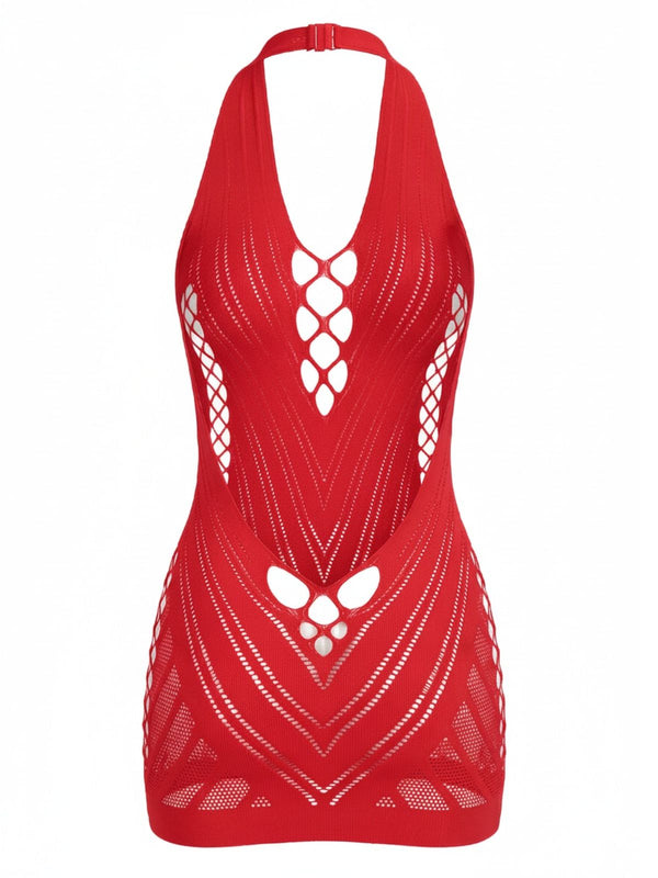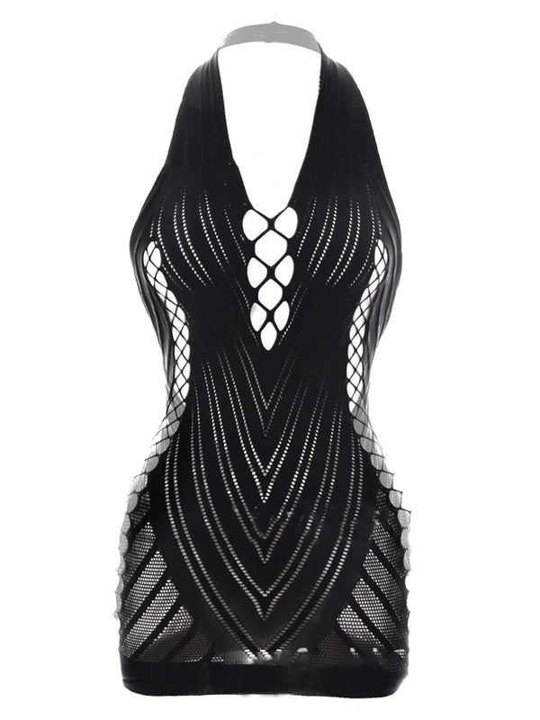 1960er Halter Netzstoff Cutout Figurbetont Mini Dessous Kleid