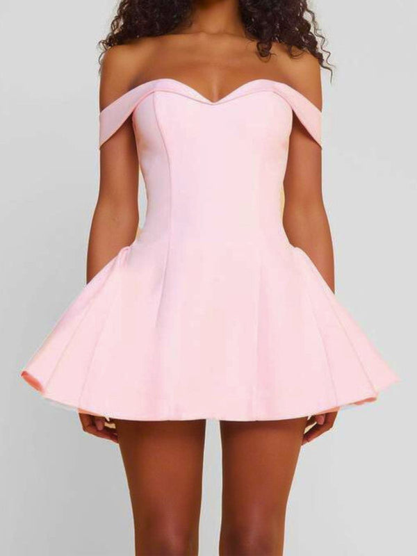 1960er Schulterfrei Figurbetont Einfarbig Mini Kleid