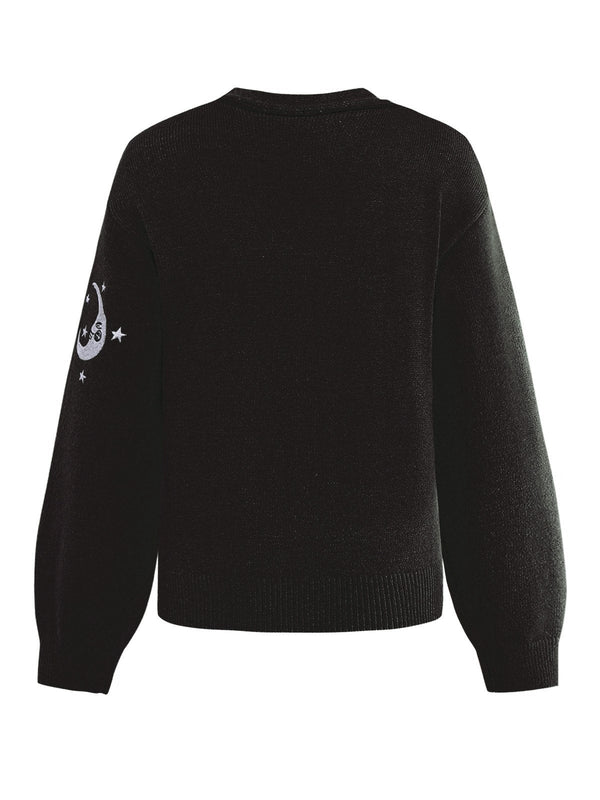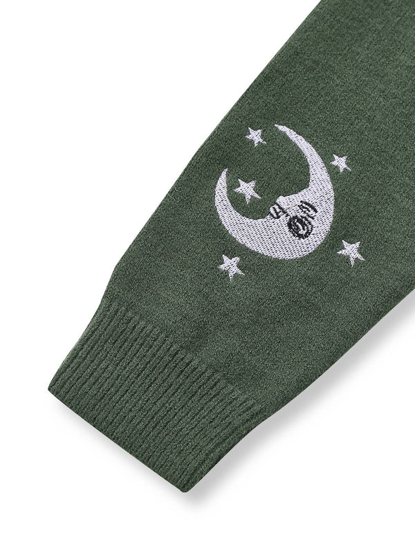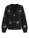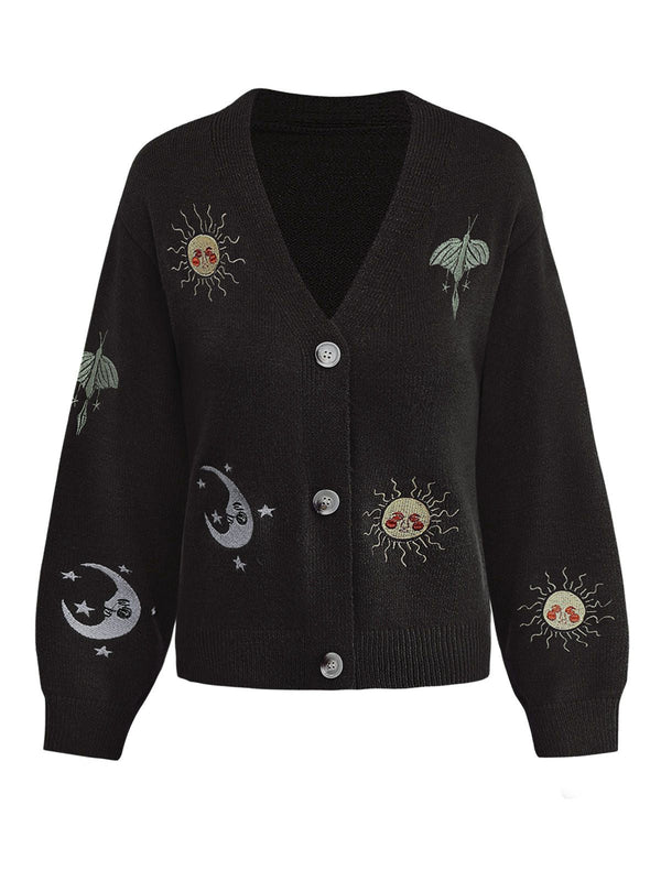 1980er Sonne Mond Bestickt Laternenärmel Stricken Cardigan