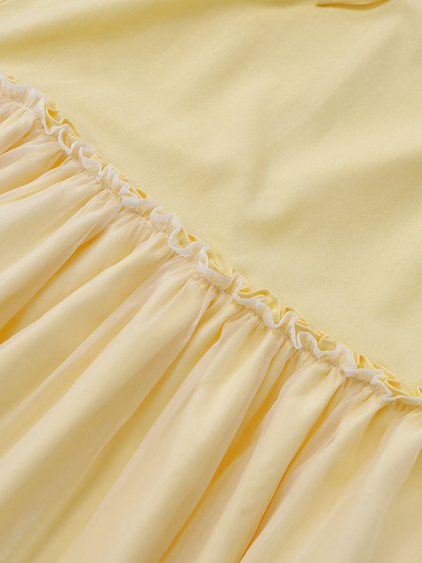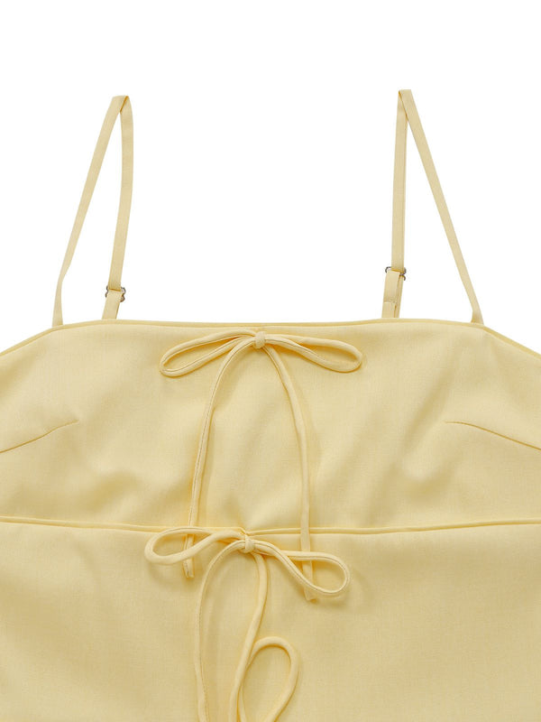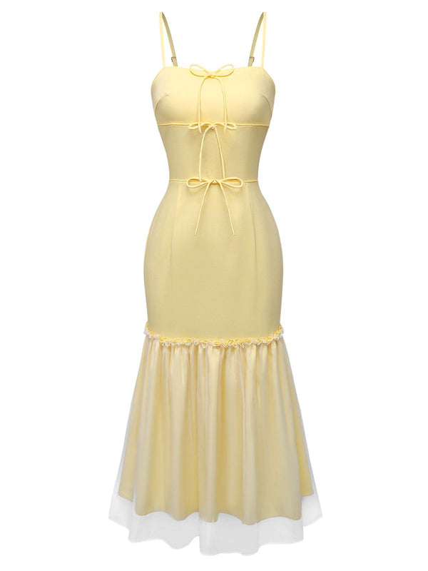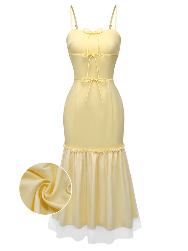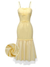 [Vorverkauf] Hellgelb 1930er Netz Spaghettiträger Kleid