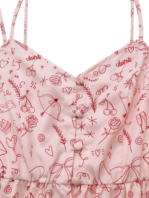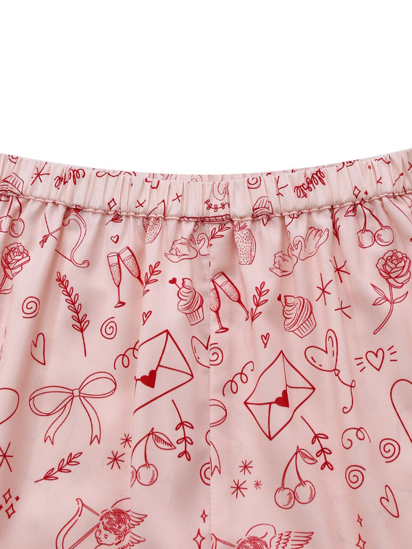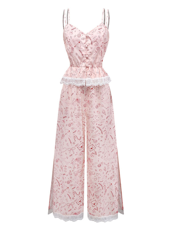 [Vorverkauf] Rosa 1970er Valentinstag Spitze Unterhemd Pajama Set