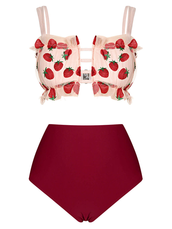 Roter 1940er Erdbeer Netzband Badeanzug