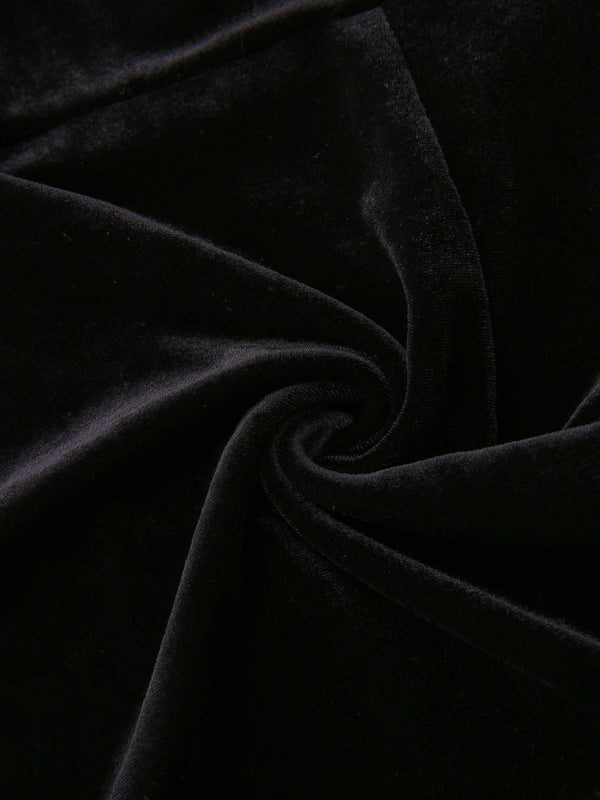 Schwarz 1960er Herzförmiger Hals Samt Plissiertes Saum Kleid