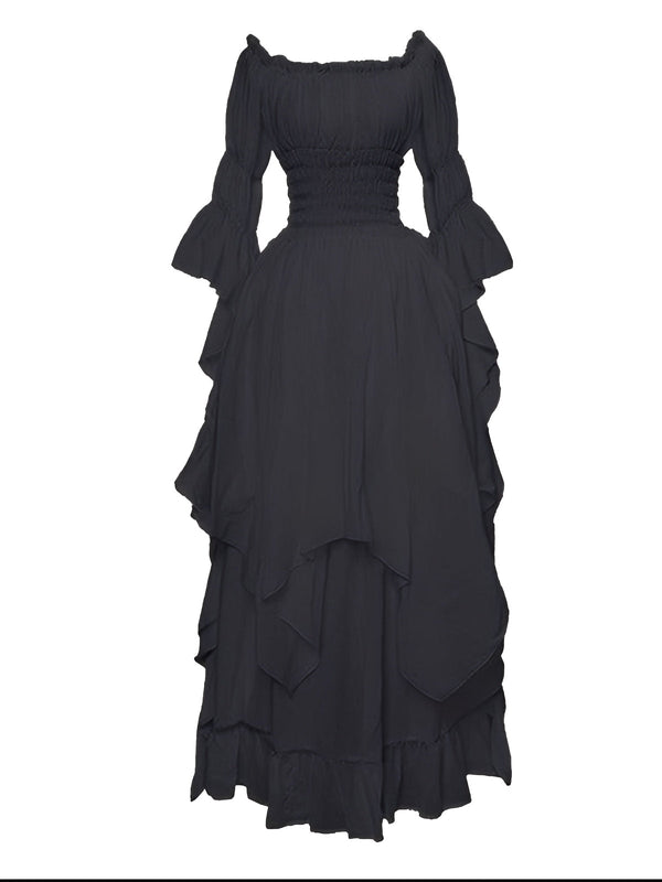 1980er Gothic Glockenärmel Unregelmäßiger Saum Kleid