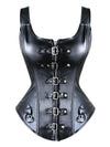Schwarz 1970er Square Neck Leather Steampunk Top