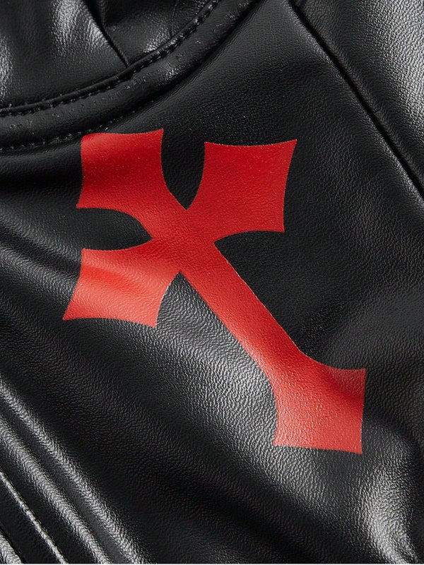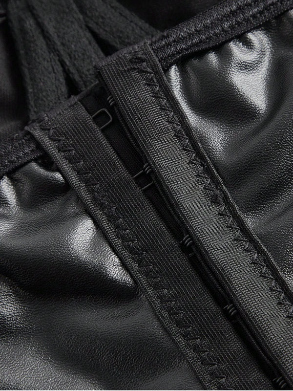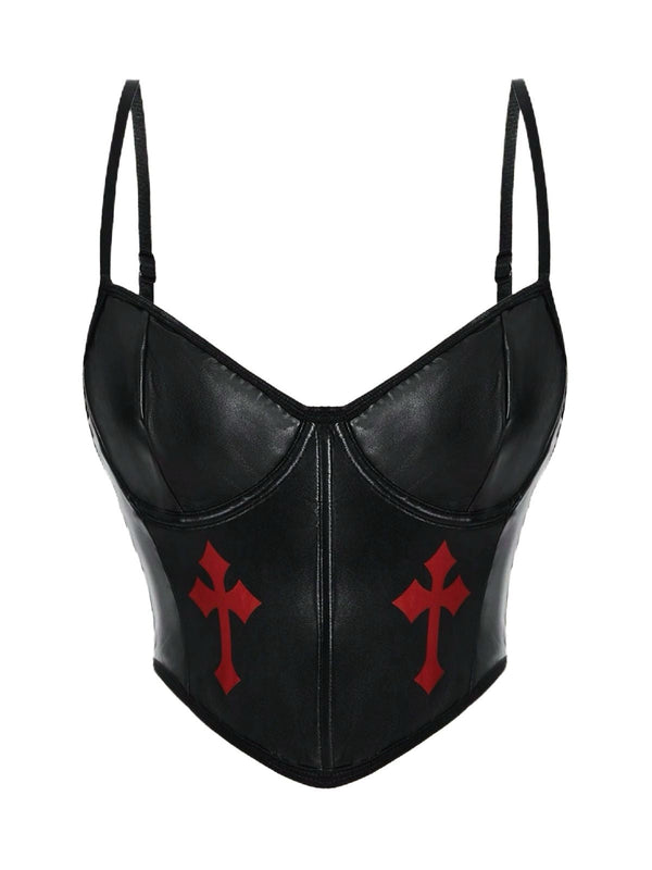 Schwarz 1970er Gothic Kreuzen Kunstleder Cami Top