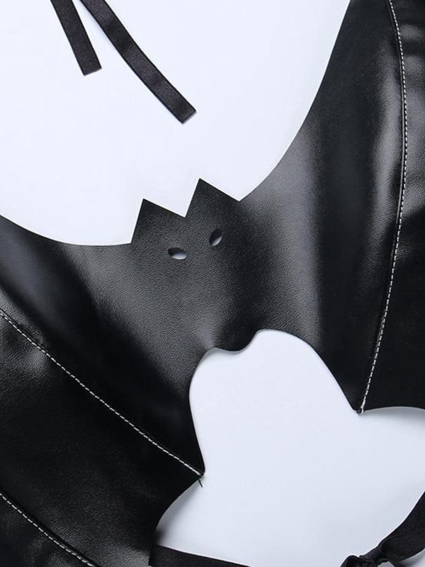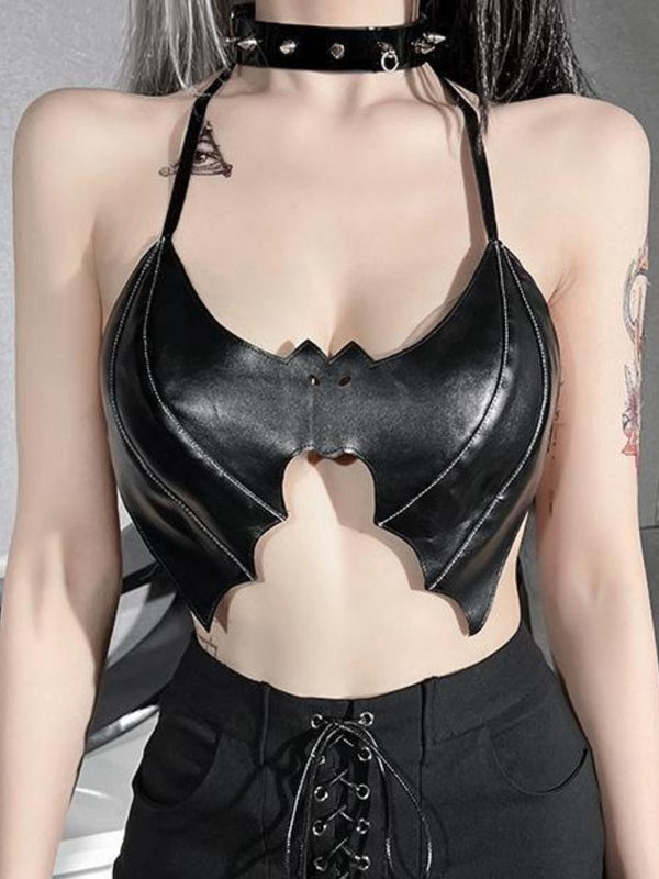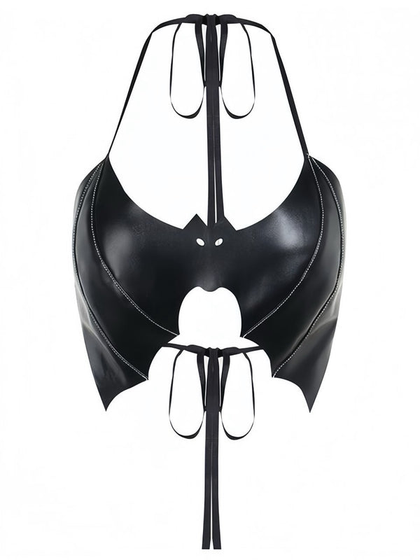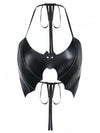 Schwarz 1980er Gothic Fledermaus Schnürung Halter Top