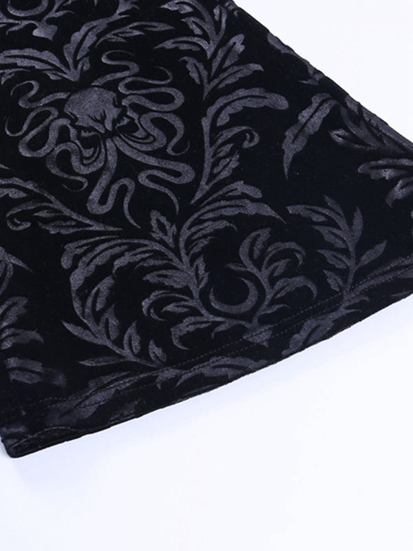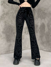 Schwarz 1980er Punk Rebe Drucken Samt Bootcut Hose