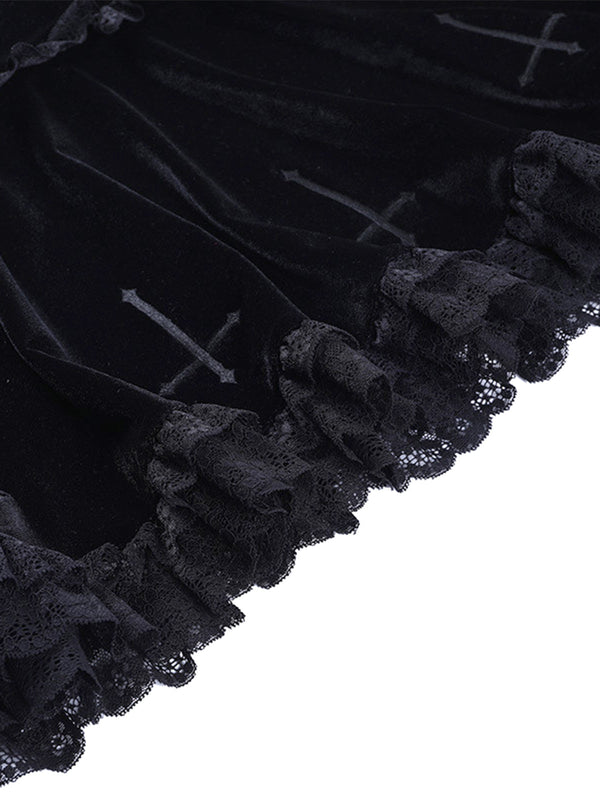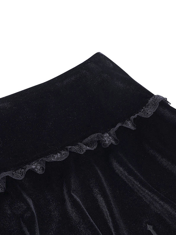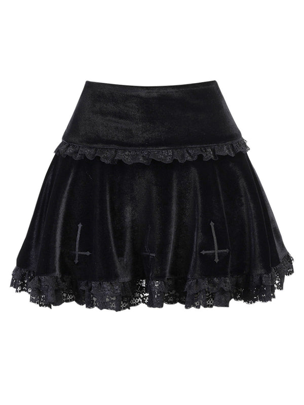 Schwarz 1980er Solide Besticktes Spitze Rock
