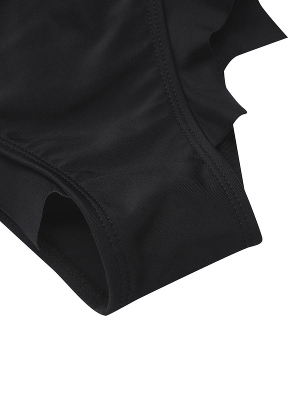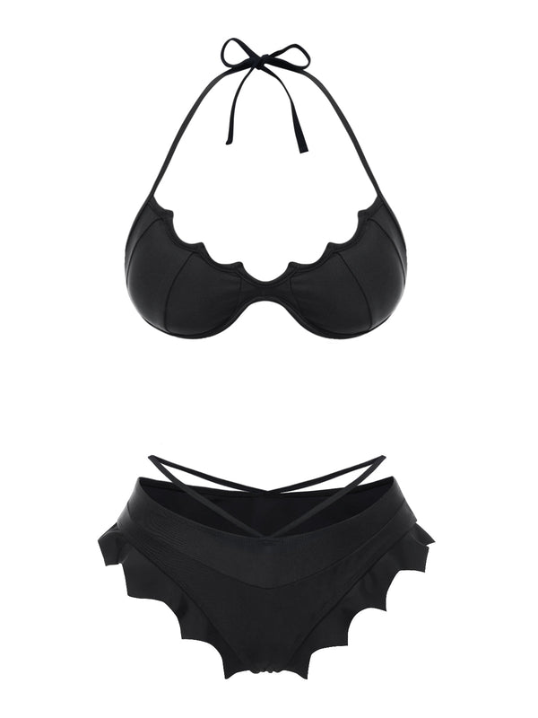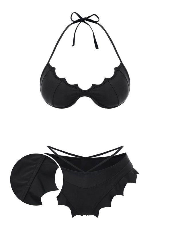 Schwarz 1980er Solide Gothic Fledermausflügel Bikini Set