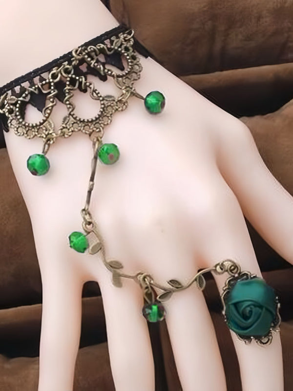 Vintage Gothic Rose Rebe Spitze Kristall Ring Armband