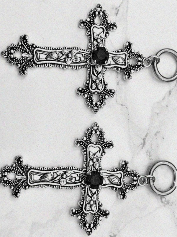 Vintage Halloween Gothic Kreuzen 3D Blume Gemstone Ohrringe