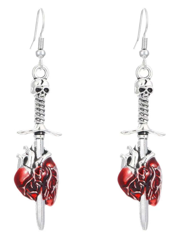 Vintage Halloween Schädel Schwert Herz Ohrringe